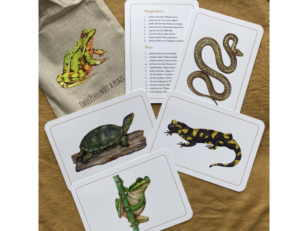 V těchto kartách jsou navíc dvě obecné karty - jedna se věnuje obecným informacím o obojživelnících a druhá se věnuje plazům (tyto speciální karty můžete využít, když se budou děti učit rozdíly mezi obojživelníky a plazy, mohou podle nich kartičky např. třídit).