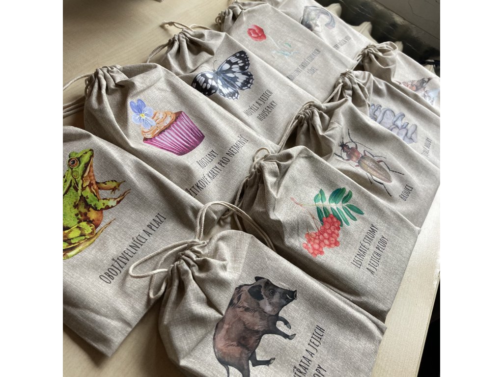 Karty jsou dodávány v bavlněném pytlíku, takže je můžete bez obav brát s sebou do přírody a nemusíte se bát, že je poškodíte. Vejdou se i do toho nejmenšího batůžku nebo je můžete na batoh pověsit a mít je tak neustále k dispozici, aniž byste je museli hledat pokaždé složitě v batohu. Karty jsou velmi vhodné také pro výuku ve školách.